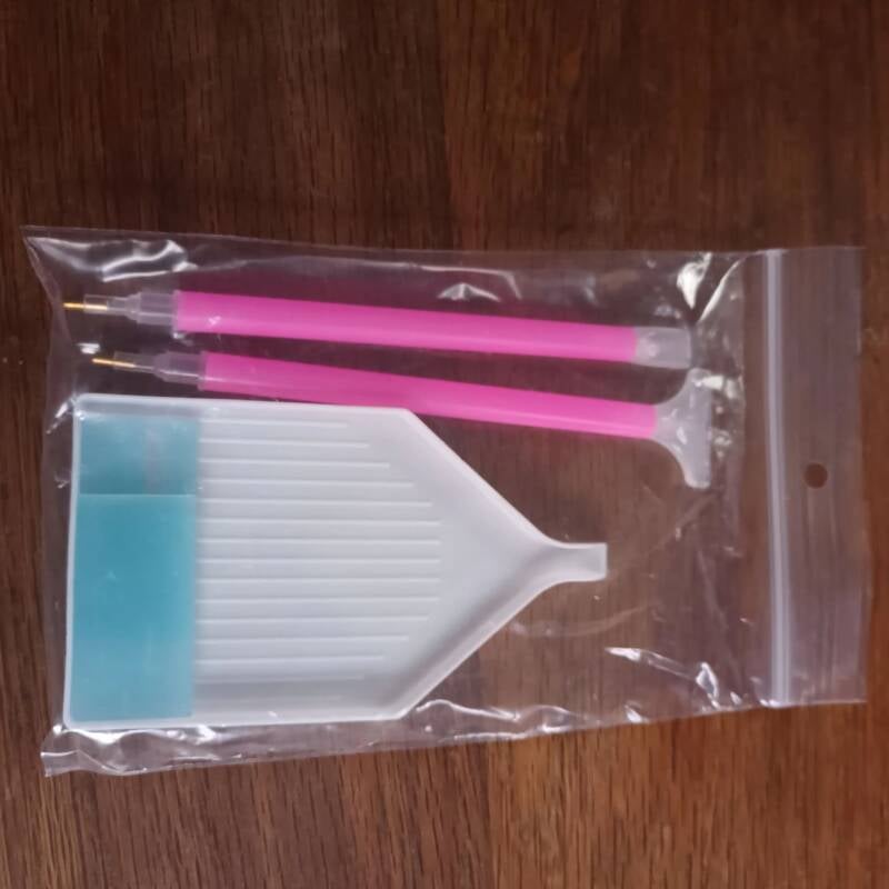 Wat mij meteen opvalt is de mooie stevige doos van de painting. Toen ik die opende zag ik dat alles mooi apart verpakt was. De painting zat los opgerold in de doos dus zaten er geen vouwen in in de painting was 1 grote zak met daarin 1 zak voor de steentjes en 1 zak voor 2 diamondpaintingpennen(1 3 steentjes pen en 1 tien steentjes pen en met aan de andere kant van beide pennen ene kant om 1 steentje op te pakken.) de wax en het schudbakje en ook een check list om te controleren of je alle steentjes nodig hebt. Ik ben heel tevreden over de verpakking en ook over de painting.