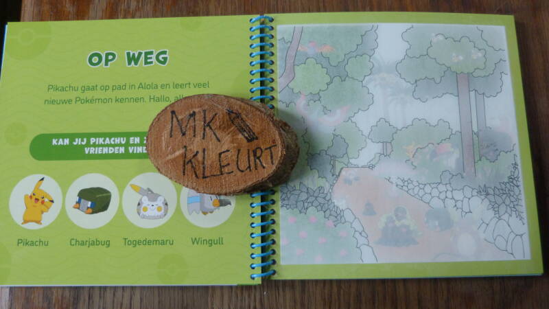Nu begin ik gewoon bij de eerste bladzijde, ik vulde het kwastje met water ging er lekker voor zitten en zette mijn stopwatch aan. Ik wou namelijk meteen kijken hoelang het zou duren om op te drogen en de pagina weer blanco te laten worden. Het kwastje wat erbij zit is van een goede kwaliteit want het lekte totaal niet. Dat is echt heel fijn met kinderen. De illustratie is erg mooi en de kleuren kwamen mooi over. Ik vind het echt apart hoe de illustratie zo tevoorschijn komt. De opdracht was ook erg leuk om te doen je moest namelijk bepaalde pokemon opzoeken, wat het moeilijker maakte was dat er meer pokemon op het plaatje staan dan dat je moet zoeken. Des te leuker is dit voor de kinderen, zo zijn ze leuk op een creatieve manier bezig met pokemon. Ik had gezegd dat ik een stopwatch aan had om te timen hoelang het duurt voor de bladzijde weer leeg is. Het antwoord is tussen de 25 en 30 minuten. (hoe natter de pagina hoe langer het uiteraard duurt.)