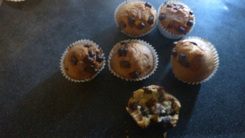 Als eerst maak je standaard muffin beslag van allemaal losse ingrediënten, en daarna roer je de chocolade drops erdoor. Dan stop je het beslag in vormpjes en versierd de muffins met nog wat stukjes chocolade. Daarna stop je het geheel in de oven en klaar zijn de muffins.