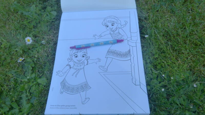 Ik vind het super leuk om met twinmarkers te kleuren, alleen niet alle boeken reageren daar goed op. Maar ik ga het proberen. Als eerst stop ik wat lege a4 papiertjes tussen de bladzijden om de kleurplaat erachter te beschermen. Daarna begon ik met kleuren. Als eerst kleur ik Anna in. De twinmarkers kleuren erg fijn ze bloeden niet maar ze drukken uiteraard onwijs door. Maar dat is niet erg. Ik kleurde zowel in enkele als in meerdere lagen en het resultaat mocht er zijn.