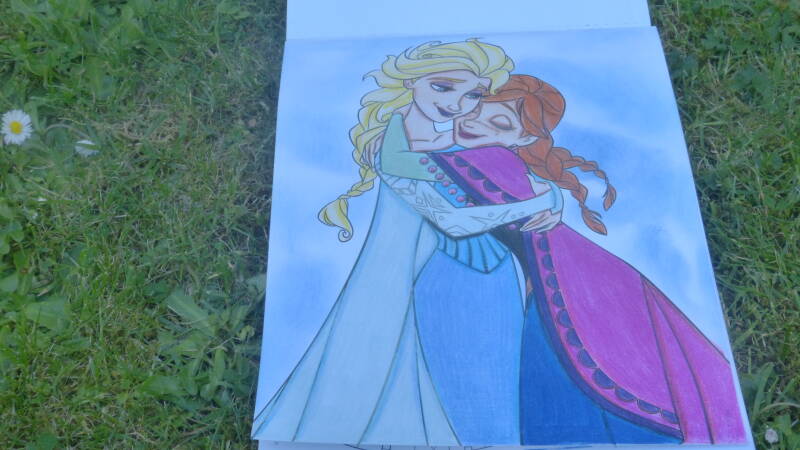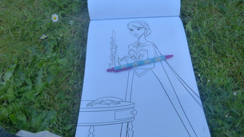 Als eerst kleurde ik de haren van Elsa, je bouwde de kleuren op van donker naar licht. Je hoefde niet te drukken op de potloden om een mooie kleurafgifte te krijgen. Het papier vertoonde zelfs na het mengen van de kleuren geen druk punten.