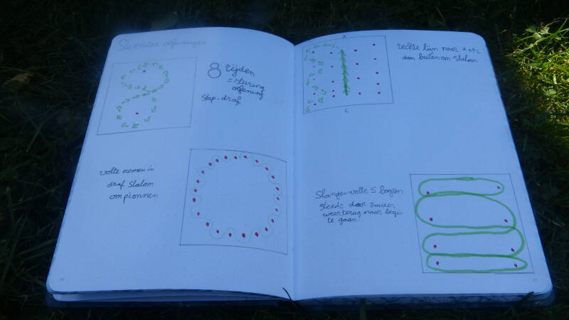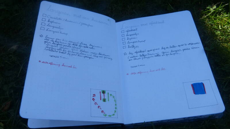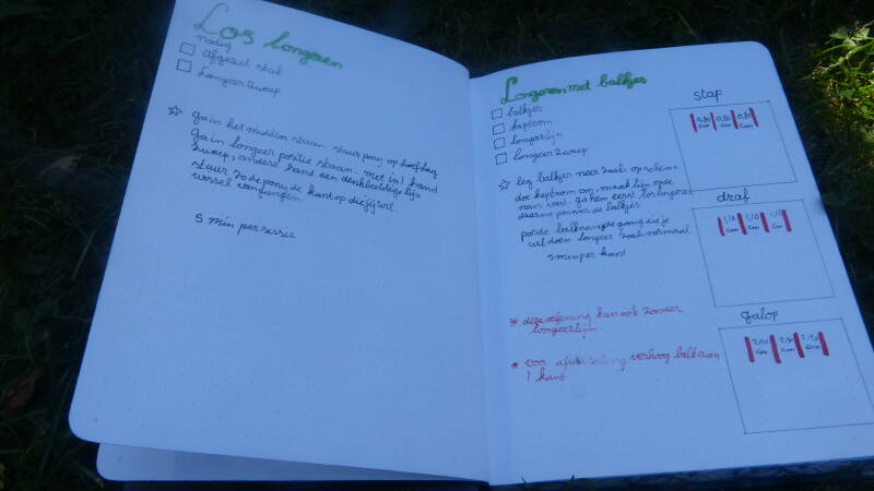 Voor deze bulletjournal heb ik het idee om alle oefeningen die ik leer qua grondwerk en mennen hier in te noteren. Vooral om zo de oefeningen nog eens te oefenen.
