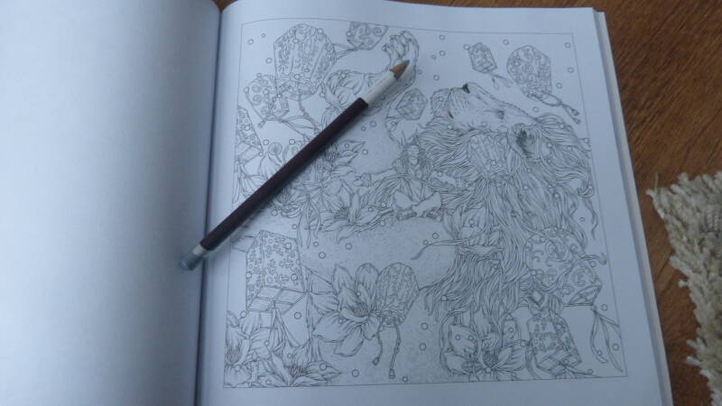 Wat me als eerst opviel was de mooie kaft maar vooral de fijne gedetailleerde platen in het boek. Ook vind ik het mooi dat de kleurplaat gedrukt is op het midden van de pagina in een kader zo hoef je niet een rug van je boek te breken. En het aller grootste pluspunt is toch echt dat het boek aan 1 kant bedrukt is.