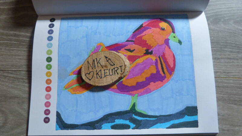 Voor de volgende plaat koos ik een vogel. Ik kleurde ze in met de watermarkers.