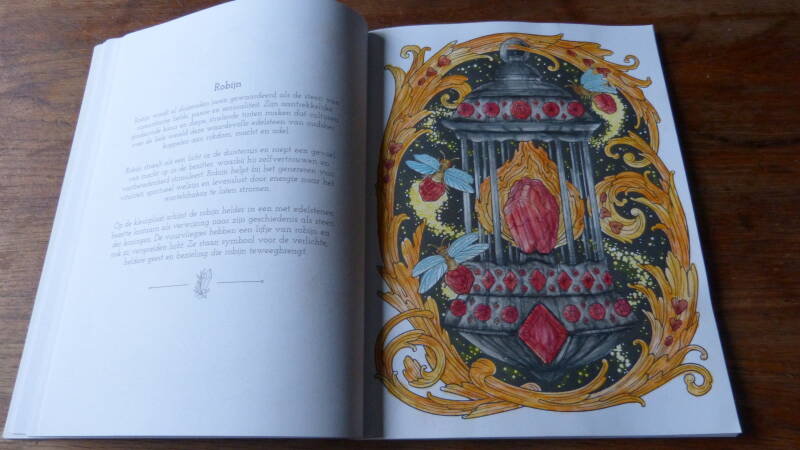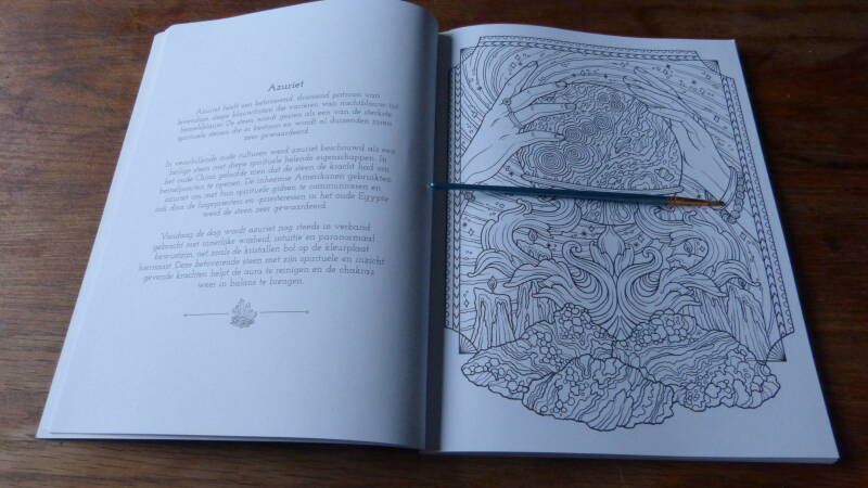 Toen ik het boek doorbladerde viel het me op hoe divers de kleurpaten waren, maar ook hoe passend de teksten erbij waren. Ze vermelden informatie over de edelsteen van de kleurplaat, maar ook hoe ze in de kleurplaat waren verwerkt. Achter op het boek staan alle edelstenen in de volgorde van het boek en op deze manier kun je ze ook precies na kleuren. Het papier voelt lekker aan dus het nodigt mij zeker uit om verder te kleuren.
