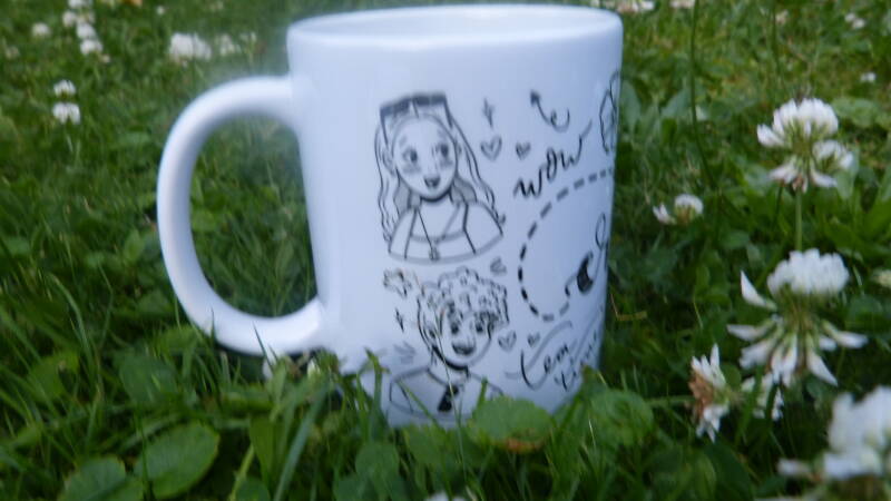 Wat me meteen opviel was dat de mok goed verpakt was in het doosje, de mok staat vol met bekende tekeningen van Creachick en de mok is van stevig maar breekbaar materiaal.