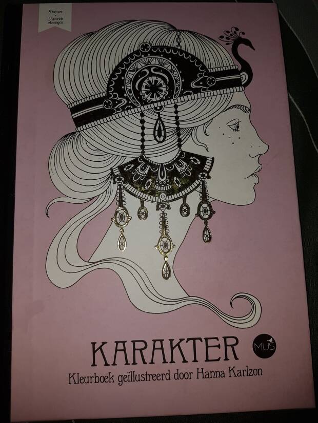 Ik maak er geen geheim van dat ik een groot fan ben van Hanna Karlzon, dus ik kon niet wachten tot ik dit boek eindelijk kon doorbladeren. Wat me meteen opviel was dat dit boek weer een harde kaft heeft waar Hanna om bekend staan. Ik vind dat erg mooi staan ook in de kast. Wat me nog meer opviel was dat Hanna eindelijk een boek heeft wat aan 1 kant bedrukt is. Persoonlijk vind ik dat echt een feestje waard haha. Zo kun je namelijk eindelijk ook met Alcohol markers erin werken. Verder viel me op dat het papier weer van zo goede stevige kwaliteit is. Genoeg het boek bewonderd haha laten we gaan kleuren.