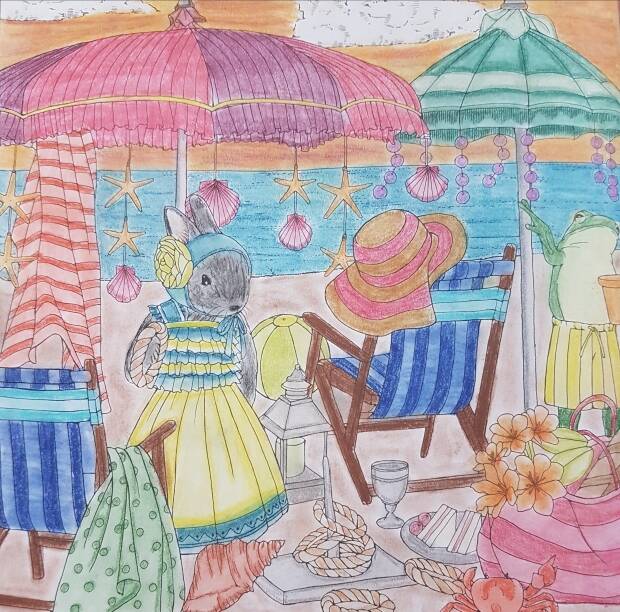 Voor de 2de plaat kies ik de kikker en het konijn op het strand, hier gebruikte ik mijn Faber Castell