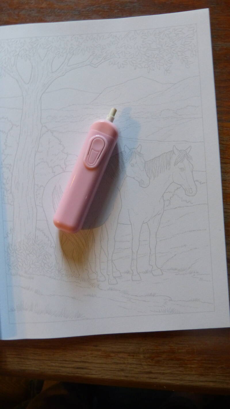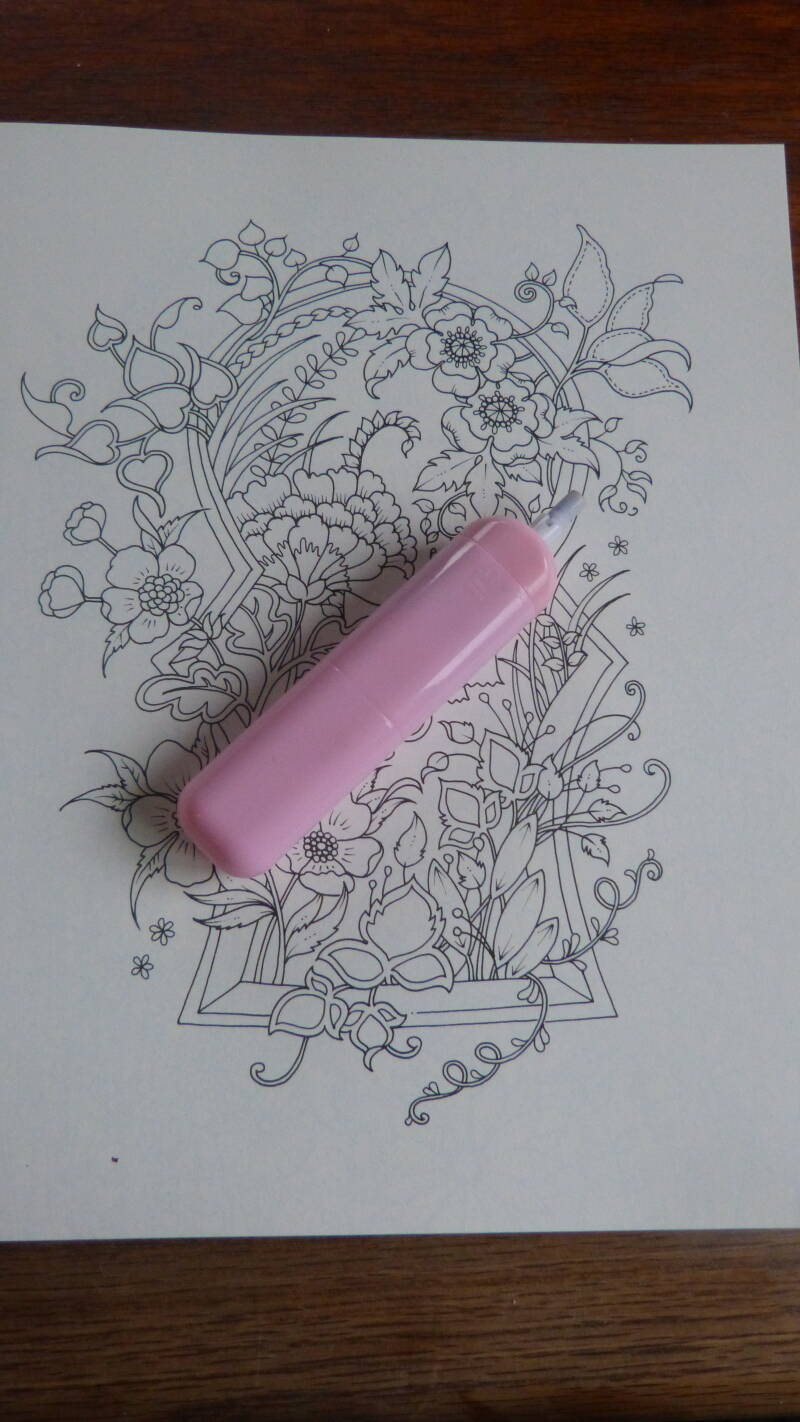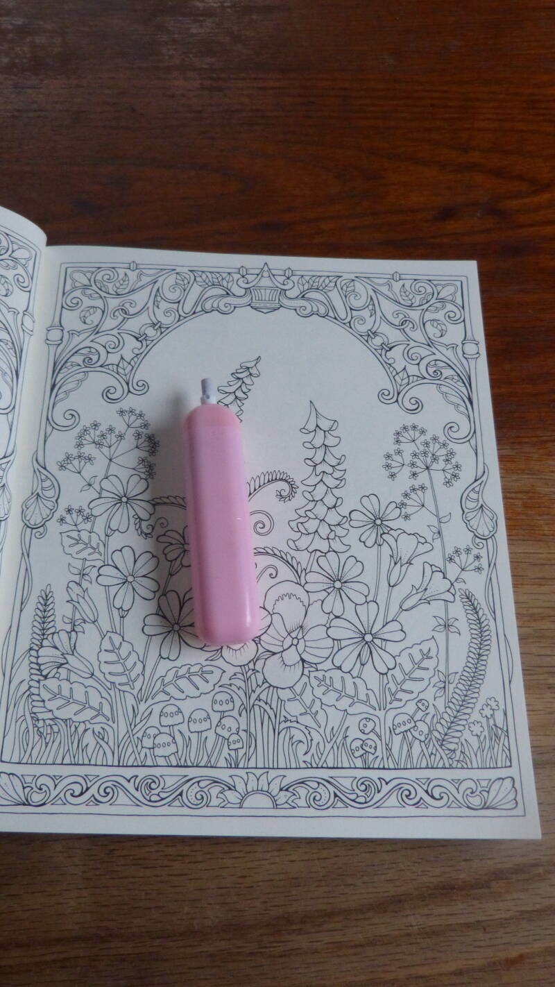 Ik bracht eerst de pastelkrijt aan om je dan minder vlekken door de stift krijgt. Vervolgens kleurde ik alles in met stift en dat ging perfect in dit boek, zelfs geen Ghosting.