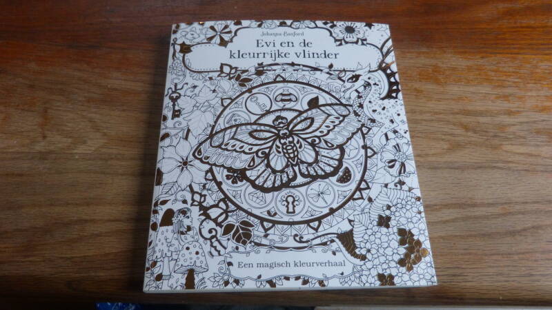 Evi en de kleurijke vlinder (Ivy and the inky butterfly) is een kleur- en vertelboek ineen van kleurkoningin Johanna Basford. Johanna schreef een verhaal bij haar prachtige illustraties met vlinder Evi in de hoofdrol. Zo kunnen moeders en oma’s hun eigen prentenboek inkleuren waardoor
