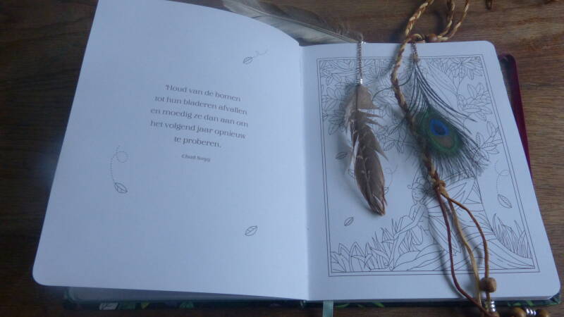 Wat mij als eerst opviel was het handige formaat van het boekje, dat het boek dicht gehouden word door een elastiek en dat er een bladwijzer in het boek gebonden is. Wat ik ook erg leuk vind is dat je links een leuke quote hebt en rechts een leuke kleurplaat, en ook in de kleurplaten zit veel diversiteit. Op deze manier hoef je niet bang te zijn dat je materiaal door gaat drukken. Wat mij ook is opgevallen dat het boek een harde kaft heeft en dat vind ik erg mooi.