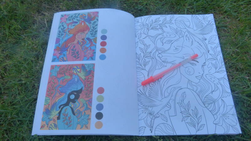 Ik vond het heerlijk om met deze potloden in dit boek te kleuren enkele of meerdere lagen niks was te gek. Het was een leuke puzzel om de kleuren te vinden die zo dicht mogelijk bij het origineel bleven, maar eenmaal gevonden bleef je kleuren. Voor de achtergrond gebruikte ik de Polychromos pastelkrijtjes. Ik ging hiermee over de gehele pagina en het resultaat mocht er zijn. Het mooiste is dat het pastelkrijt totaal niet ging afgeven.