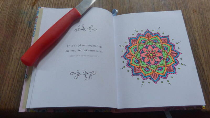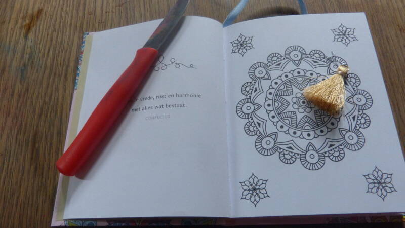 ik ben gek op mandala kleuren en aangezien ik nog wel eens moet wachten bij de huisarts ben ik erg blij met dit handige kleine boekje. Maar goed tijd om te kleuren nu!