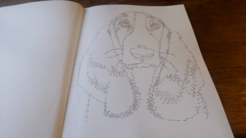 ik begin gewoon voor in het boek en ga zo naar achteren. Zoals voorspeld waren de nummers super klein dus vooral waar veel nummers samen kwamen moest ik goed kijken. Toen ik op zulke plekken kwam wist ik wel meteen waarom de nummers verschillende kleurtjes hadden. Daar hebben ze echt heel goed over nagedacht. Wel denk ik dat wanneer je slechtere ogen hebt een vergrootglas of een leesbril wel handig kan zijn. Als je de nummers eenmaal volgt dan zie je stap voor stap een mooie hond te voorschijn komen. De honden zijn zo duidelijk dat wanneer je een beetje kennis hebt van hondenrassen je ze er ook echt in herkent. Niet alle rassen staan in het boek bijvoorbeeld een prachtige herder staat er niet in. Maar genoeg andere populaire rassen wel zoals de labrador retriever.