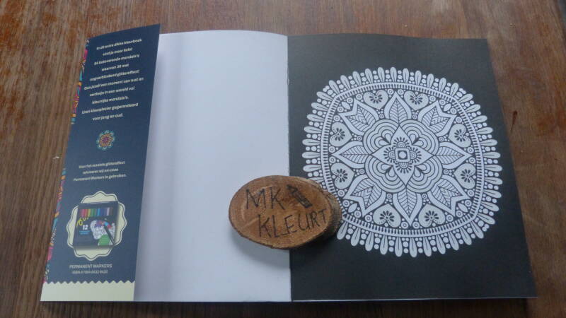 Wat mij als eerst opviel was de diversiteit in mandala's sommigen hebben een contrast achtergrond, waar anderen een glittereffect erin hebben verwerkt en sommige platen hebben zelfs een combinatie. Achter in het boek staan ook nog eens normale mandala's. Ik vind de flapjes heel ideaal want die kun je als bladwijzer gebruiken wat ideaal is als je even een pauze moet nemen. Het papier voelt fijn aan zeker geschikt voor stiften. Maar wat mij nog het meest opvalt is dat het boek enkelzijdig bedrukt is. Dat geeft je veel vrijheid in materiaal keuze.