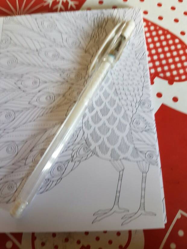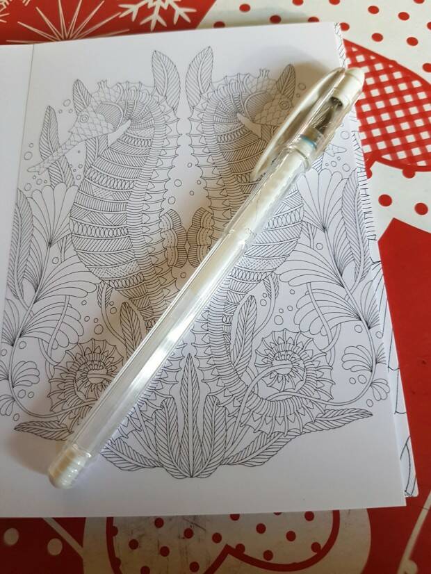 De bruynzeel was net zo makkelijk aan te brengen als de Faber castell, ook het doezelen ging weer probleemloos. Nu de test qua stift. Ik pakte de blauwe Faber Castell pitt stift en begon te kleuren dat ging erg mooi en na 1 laag was het al bijna streep loos. Vervolgens wat stipjes met witte gelpen.