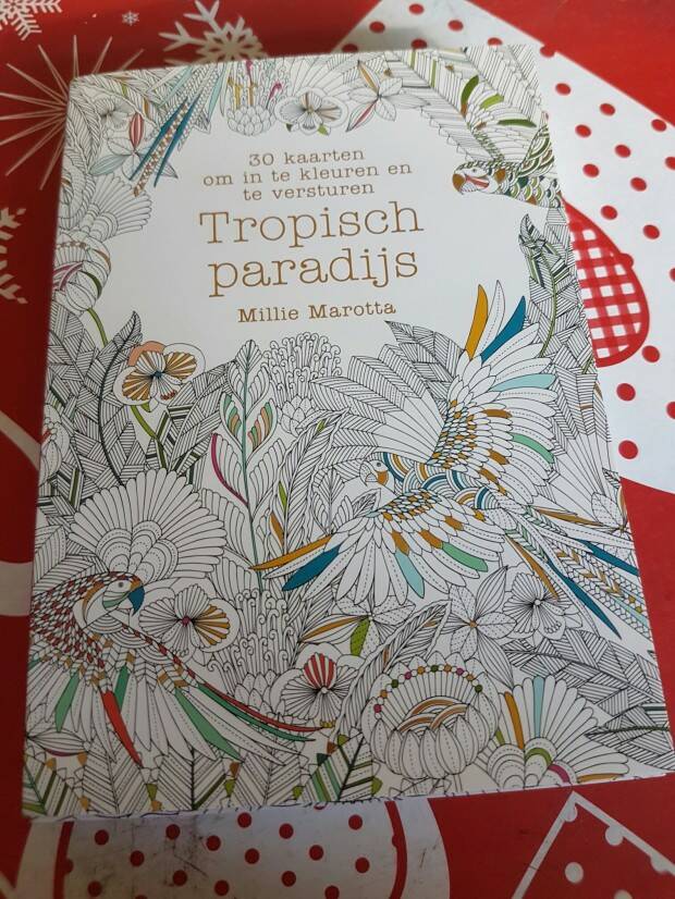 Dit keer een review over het boek: Tropisch paradijs 30 kaarten om in te kleuren en te versturen. Dit boek is ter beschikking gesteld om te reviewen door Karakter Uitgevers B.V. Hiervoor wil ik jullie heel erg bedanken.