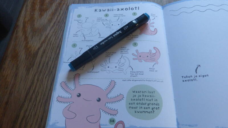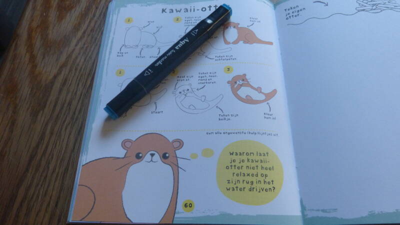 Nu ga ik beginnen met tekenen. Eerst krijg je veel informatie over de materialen die handig zijn om te gebruiken, daarna krijg je wat uitleg en wat start oefeningen. Daarna begint het echte werk. Als eerst ga ik de schets van het nijlpaardje maken. Ik gebruik hier een simpel grijs potlood voor, daarna ga ik hem inkleuren en dat ging heel fijn met de Faber castell potloden. Daarna ben ik nog meerdere dieren gaan schetsen en uiteindelijk ook de kwalletjes. Die ging ik na het tekenen inkleuren met aquamarkers en dat ging probleemloos. Ik vind het schetsen van de dieren heel leuk vooral om de stap voor stap tekeningen zo duidelijk zijn. Ik vond het ook leuk om met behulp van de uitleg een kleurplaat te tekenen.