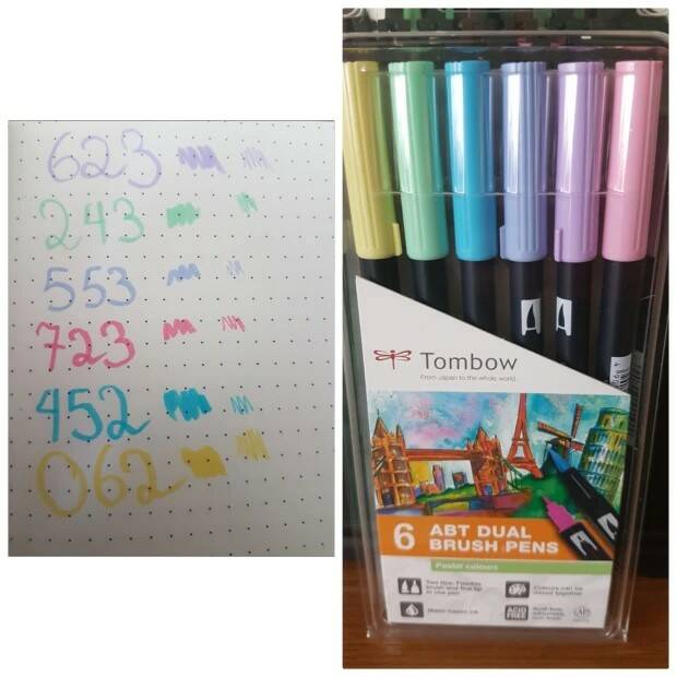 Toen ik dit doosje mocht ontvangen viel me meteen op hoe netjes Bush en van den worp de spullen verstuurd. Netjes in een stevige doos en groot genoeg zodat je materiaal niet gaat klem zitten. Toen ik het doosje losmaakte zag ik de set met stiften 6 prachtige pasteltinten. Ik vind de kleuren erg mooi en was meteen heel nieuwsgierig. Wat me meteen opviel was dat iedere stift voorzien is van een nummer, dat is iets wat ik persoonlijk heel handig vind als bijvoorbeeld je stift leeg is of je perongelijk een stift weg legt als je een pauze neemt of stopt met kleuren. Ook valt me op dat je bij de Tombow stiften geen dubbele zet(fineliner en stift) hoeft aan te schaffen, aan een kant de brush punt en aan de andere kant een dunnere punt. Ik ga zeker beide kanten uit proberen. Verder zien de stiften er heel mooi uit en kan ik niet wachten om te gaan testen.