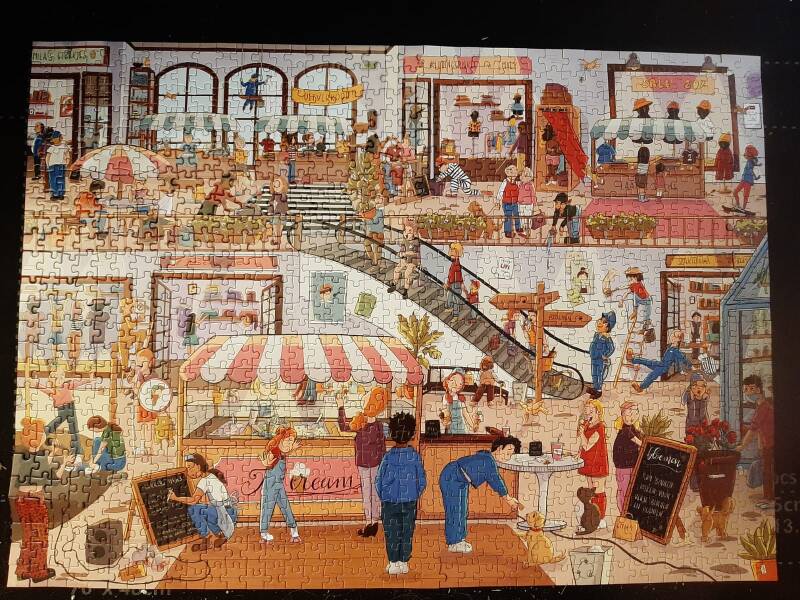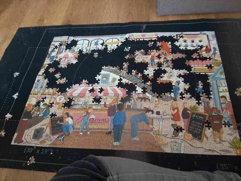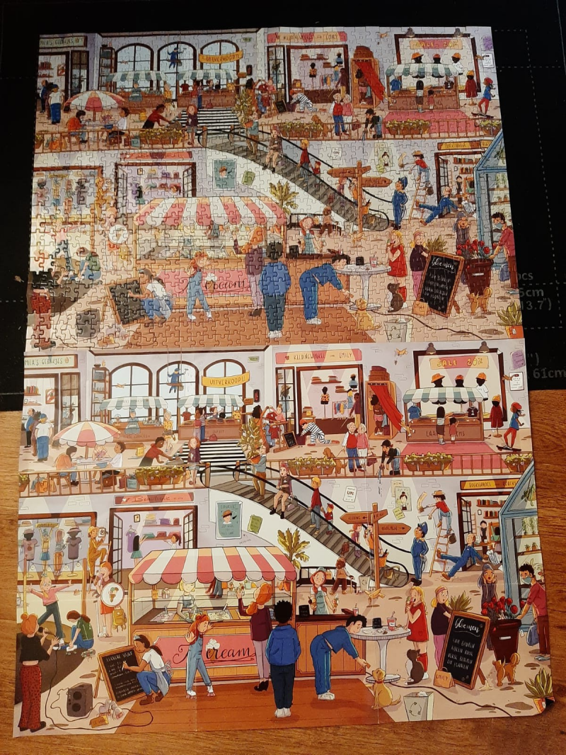 Wat ik je wel erg aan kan raden is een puzzelmatje te kopen zodat wanneer je even geen zin meer hebt je de puzzel makkelijk weer weg kan leggen. Hoe verder ik kwam met de puzzel hoe makkelijker ik hem begon te vinden.