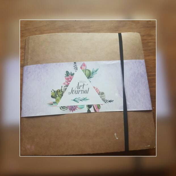 Wat me als eerst opviel was dat de kaft mooi stevig was en ook een vakje waar je stickers of knipsels in kan bewaren de pagina’s hebben wel een gelerige kleur hebben maar daardoor zeer geschikt voor een laagje Gesso. Door het elastiek kan je altijd zorgen dat je Artjournal nog dicht kan.