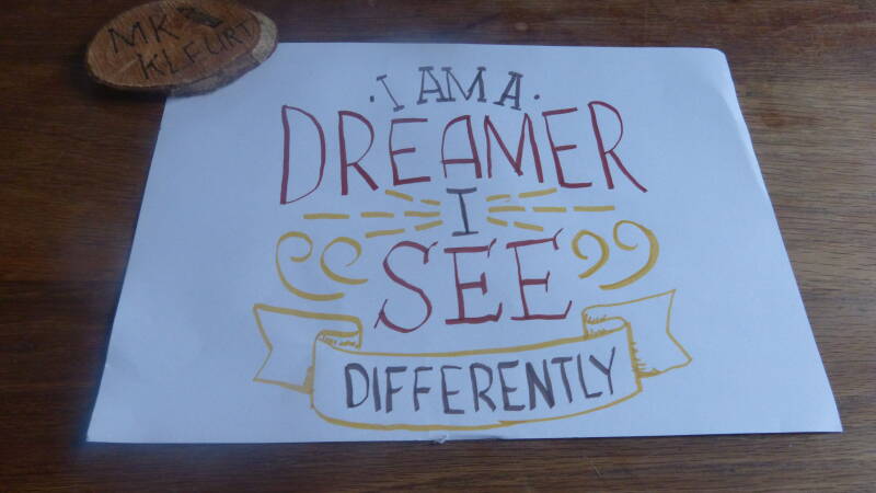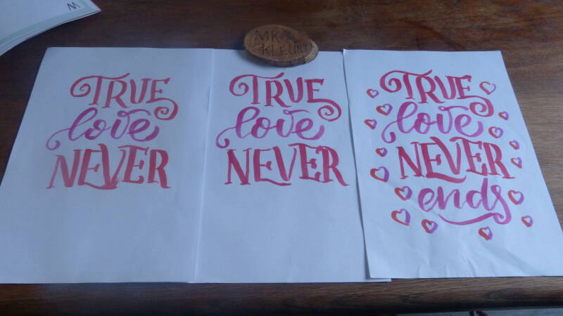 Toen besloot ik om met behulp van de tips van dit boekje wat eigen handletterringen te maken. En ik moet zeggen normaal heb ik moeite met alles goed uit laten komen ect maar door de tip van zet de woorden in hokjes en als je fouten maakt ga gewoon door en trek het later over is het me toch gelukt. Ik was heel erg tevreden over het resultaat.